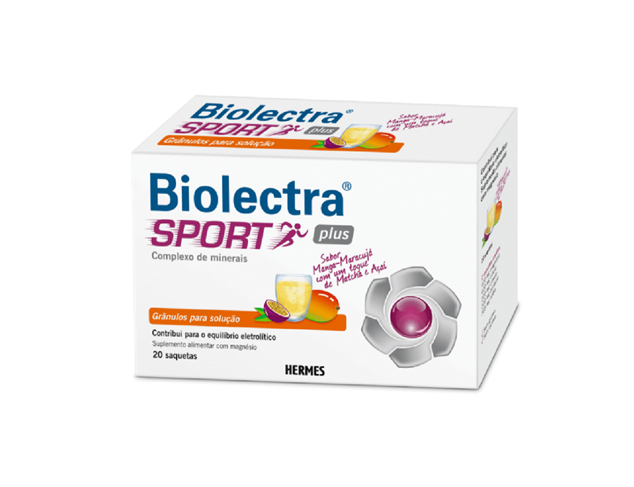 Biolectra Sport Plus 20 Saquetas, com sabor manga e maracujá com um toque de matcha e açaí, é um suplemento alimentar adequado para tomar